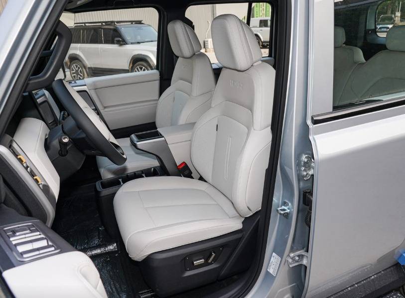 iCAR V23车辆座椅同样采用仿皮面料包裹,功能方面多出副驾驶座椅加热,但缺少驾驶位座椅通风和驾驶位电动座椅记忆。比较独特的是,iCAR V23采用了4座布局,前排座椅造型厚实,而且腰部设计的颇为饱满,可提供良好的支撑。其后排座椅放置的位置比较靠后,具备良好的私密性,实际乘坐空间要比前者更好一些,只是储物能力偏弱。