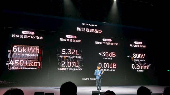 一是联合宁德时代共同开发,首次量产的行业最大66千瓦、800伏增程专属电池—— “超级骁遥MAX电池”。CLTC纯电续航里程能达到450公里,基本满足一周城市通勤需求;与此同时,凭借800伏超快充高压平台,峰值充电功率可达268千瓦,仅需15分钟即可补充310公里。