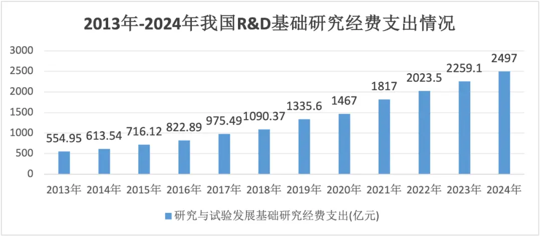 国家统计局的数据亦显示,近十几年来,我国基础性研究经费支出已经从500多亿元,增长至去年的近2500亿元,增长四倍有余。