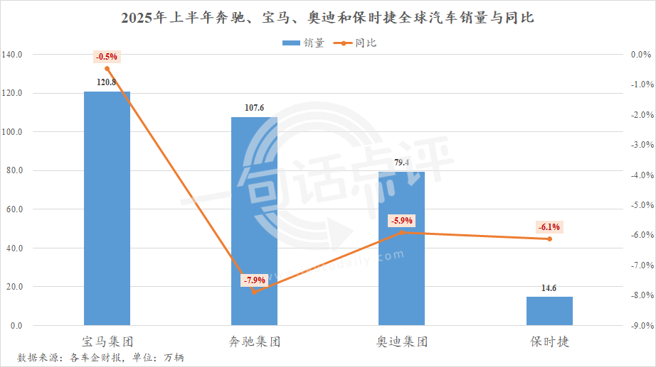 ●保时捷上半年的交付量是14.6万辆,同比下跌6.1%,它在欧洲、北美和中国的销量也是全部负增长,而且其在德国和中国市场的跌幅分别达到23.2%和27.9%,是四家中唯一一家在中国跌幅超过20%的车企集团。